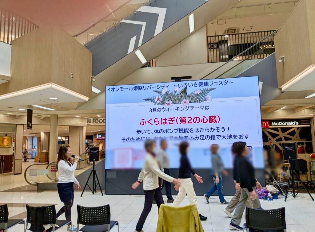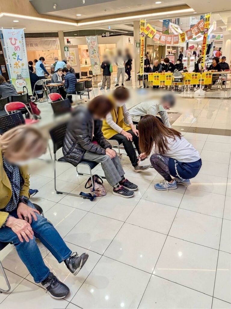 健康に関するブースがいろいろ出展されています。参加するとポイントがたまり、『ひめさんポ』というアプリにポイントが保有されていきます。健康いちばん!でぜひ継続していきましょう。