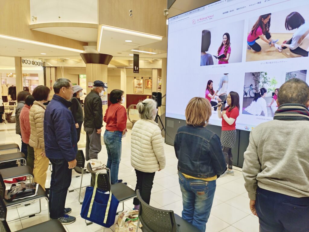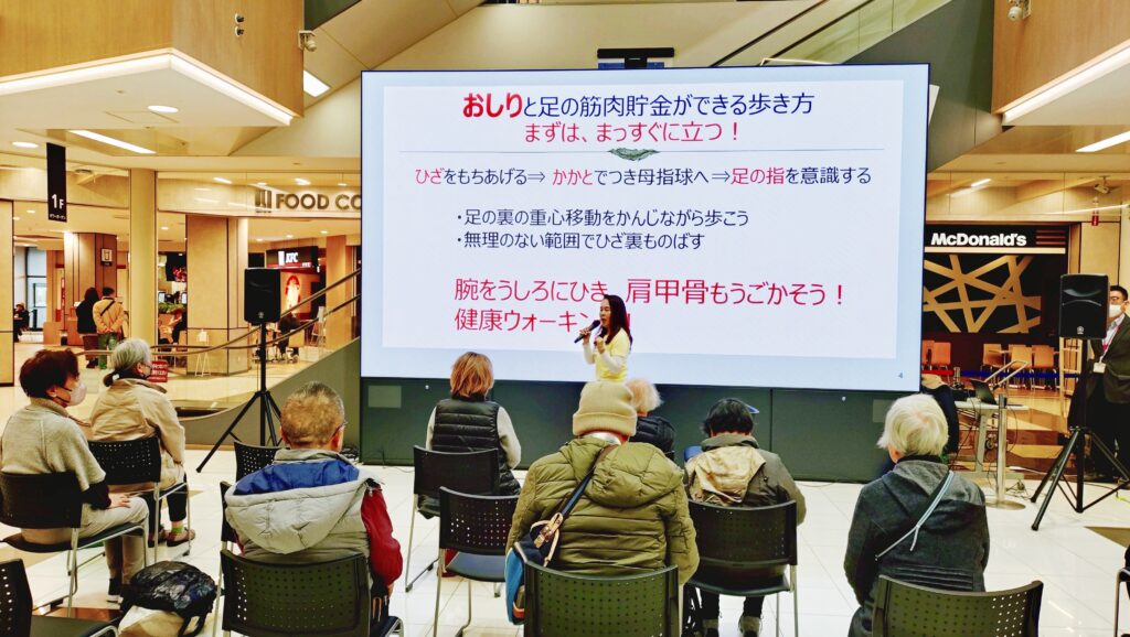 2025年11月からご縁をいただきまして姫路市の主催されている「ひめさんポ」というアプリと、姫路リバーシティのイオンモールとのコラボイベントでウォーキングレッスンを担当しています。